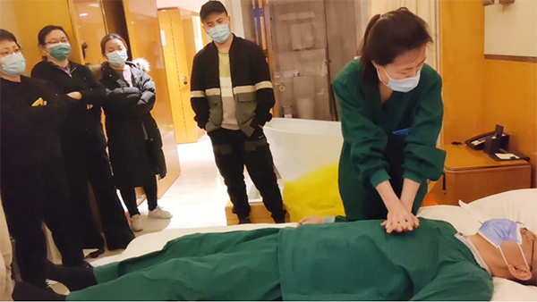 程少为利用从事党务工作的优势,在同为驻地酒店保障人员的12C病区副护士长、党员许斅斅的协助和配合下,有效组织医疗党小组的4名党员,1名入党积极分子和6名群众,将党小组活动同医疗团队周例会结合起来。在日常工作中,程少为和许斅斅发挥垂医人吃苦在先的精神,率先垂范,工作上亲力亲为,在党员群众中起到了表率作用。