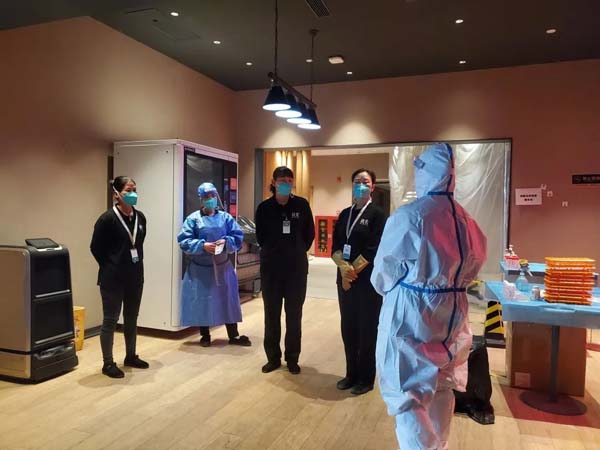 因为专班防疫出现的任何问题都要及时上报区卫健委,所以区域管理片长对高红英说:“其他新进驻酒店遇到什么问题就让他们找你。”为了做好这个“义务顾问”,高红英每天反复学习各种政策、指引,将流程熟记于心,将曾经遇到的问题和处理方式及时梳理,这个“义务顾问”得到了同事们的高度认可。