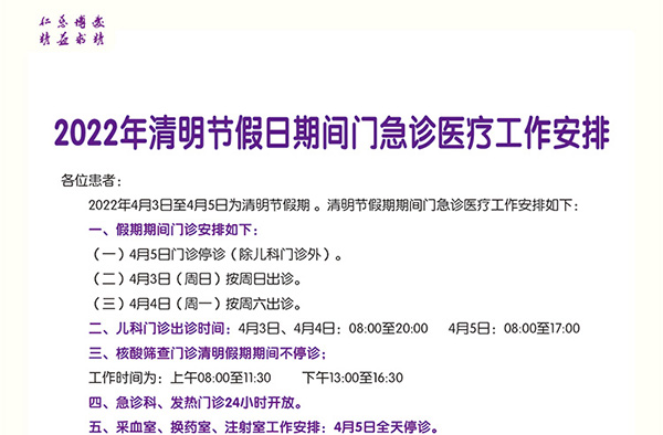 2022年清明节假曰期间门急诊医疗工作安排