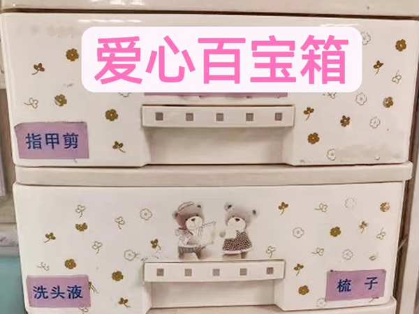 “爱心百宝箱”虽然没有百种物品,但目标是:“以患者为中心”,倡导“爱心服务百分百”,箱中的物品也会根据患者需求动态调整,随时为患者提供周到的服务。