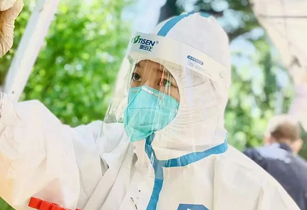 到了中午12点多,徐玮玉来不及吃午饭,就匆忙换上新的防护服,赶往下一处核酸采样点。