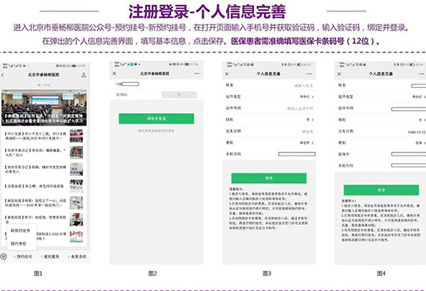 如果患者第一次登录,进入北京市垂杨柳医院公众号,选择预约挂号-新预约挂号-注册绑定档案。