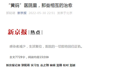 【媒体聚焦】新京报 | “黄码”医院里,那些相互的治愈
