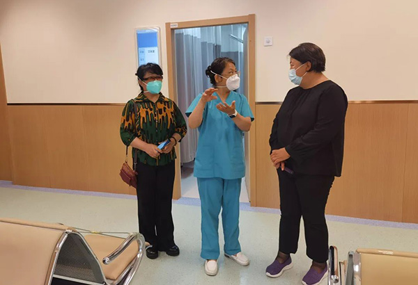 最后,两位督察员对我院门诊进行巡查,对门诊环境的改善给予高度认可,中医科主任陈爱玲介绍医院中医特色和开展的新技术新项目。希望加强与社区的宣传与合作,为社区居民提供优质特色的中医服务。
