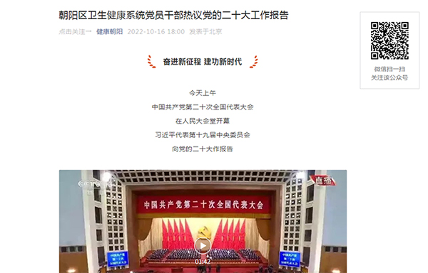 【媒体聚焦】健康朝阳 | 朝阳区卫生健康系统党员干部热议党的二十大工作报告