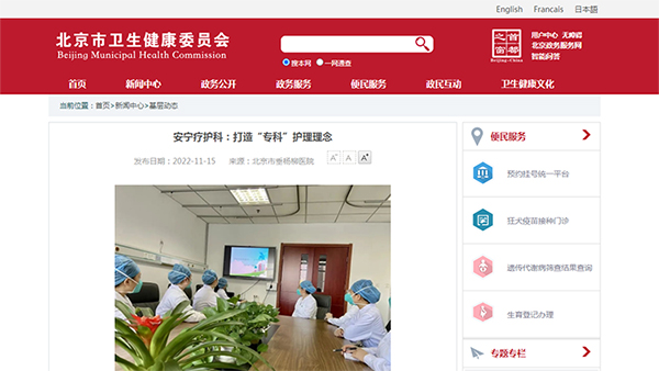 【媒体聚焦】北京市卫健委 | 安宁疗护科:打造“专科”护理理念