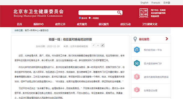20221130--市卫健委官网--驰援一线:他在面对病毒时这样做.jpg