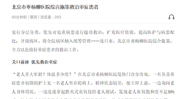 【媒体聚焦】朝阳报 | 北京市垂杨柳医院综合施策救治重症患者