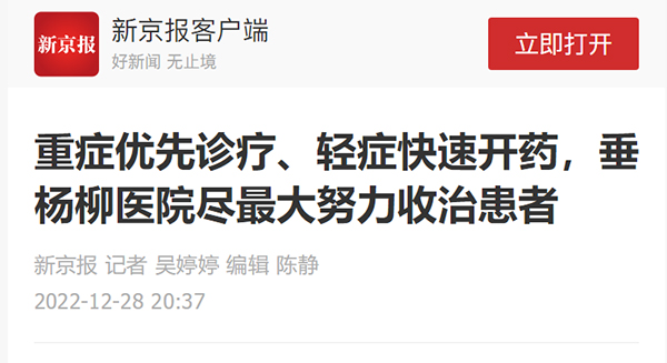 【媒体聚焦】新京报 | 重症优先诊疗、轻症快速开药,垂杨柳医院尽最大努力收治患者