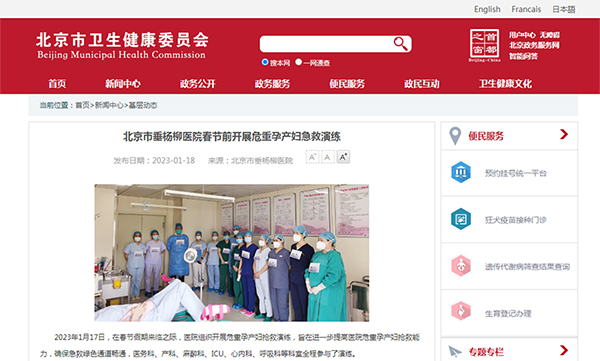 【媒体聚焦】北京市卫健委 | 北京市垂杨柳医院春节前开展危重孕产妇急救演练