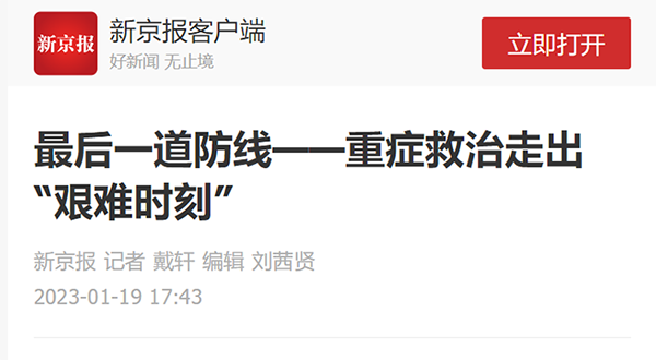 【媒体聚焦】新京报 | 最后一道防线——重症救治走出“艰难时刻”