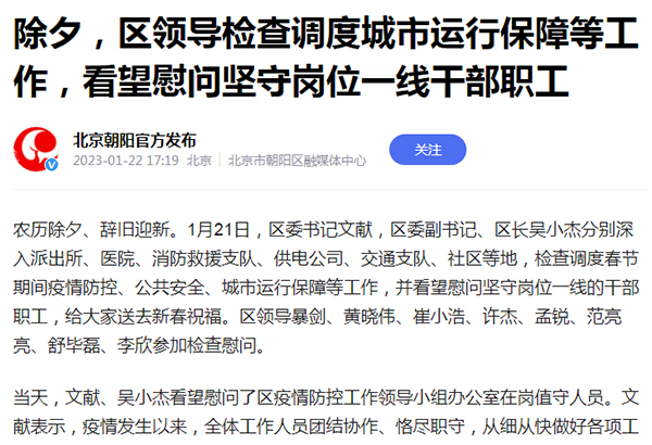 【媒体聚焦】北京朝阳 | 除夕,区领导检查调度城市运行保障等工作,看望慰问坚守岗位一线干部职工
