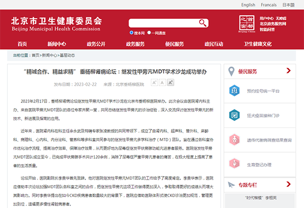 【媒体聚焦】北京市卫健委 | “精诚合作、精益求精”垂杨柳肾病论坛:继发性甲旁亢MDT学术沙龙成功举办