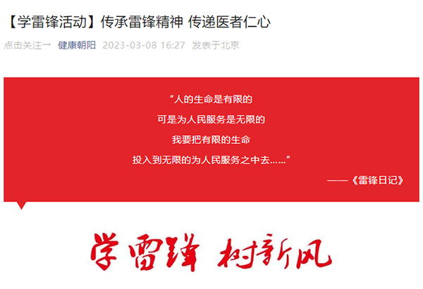 【媒体聚焦】健康朝阳 | 【学雷锋活动】传承雷锋精神 传递医者仁心