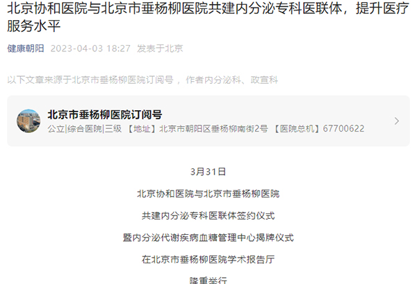 【媒体聚焦】健康朝阳 | 北京协和医院与北京市垂杨柳医院共建内分泌专科医联体,提升医疗服务水平