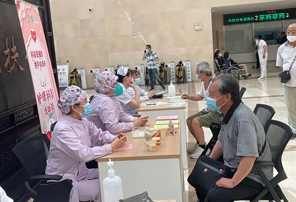 活动中,口腔科护士长关红辉,主管护师杨洁,在现场为有需要的患者提供口腔健康咨询、疾病健康宣教等服务。