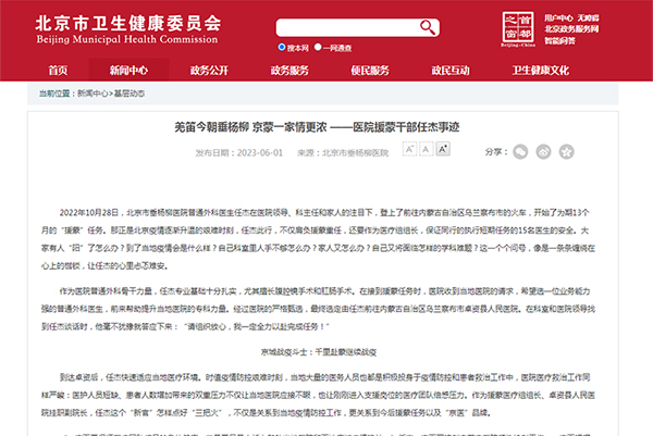 【媒体聚焦】北京市卫健委 |羌笛今朝垂杨柳-京蒙一家情更浓-——医院援蒙干部任杰事迹