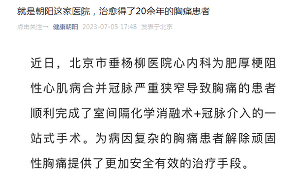 【媒体聚焦】健康朝阳 | 就是朝阳这家医院,治愈得了20余年的胸痛患者