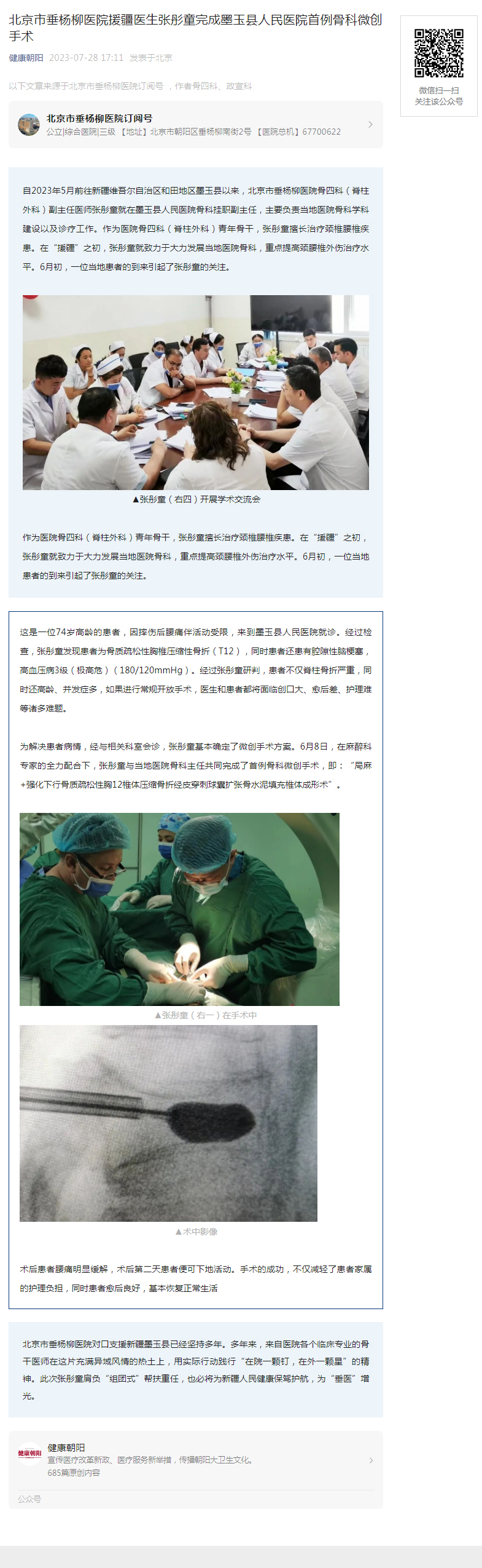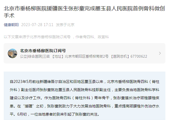 下一篇: 【媒体聚焦】北京市卫健委 | 【对口支援】“钥匙孔”手术打通患者腰椎 北京市垂杨柳医院援…