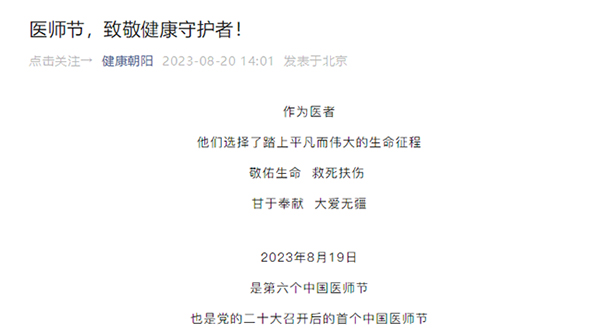 【媒体聚焦】健康朝阳 | 医师节,致敬健康守护者!