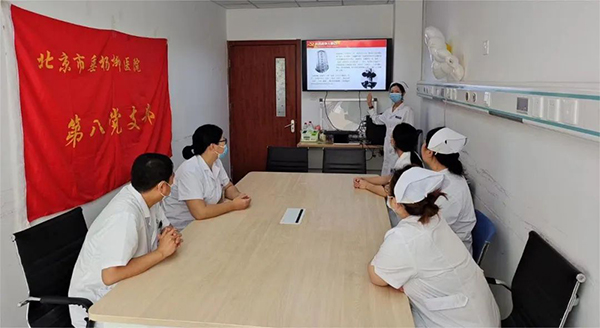 会上,第八党支部党员、老年医学科护士长张利荣带领大家重温抗战精神。她通过解读抗日战争史,讲述了中国人民经过艰苦卓绝的抗战,终于打败了日本侵略者,赢得近代以来中国抗击外敌入侵的第一次绝对胜利。她讲到,这场战争虽然付出了巨大的代价,但赢得了世界的尊重和关注,也让我们更加深刻地认识到民族独立和自由的重要性。