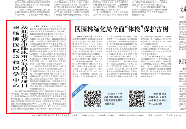 【媒体聚焦】 朝阳报|垂杨柳医院急救医学中心获批北京市临床重点专科培育项目