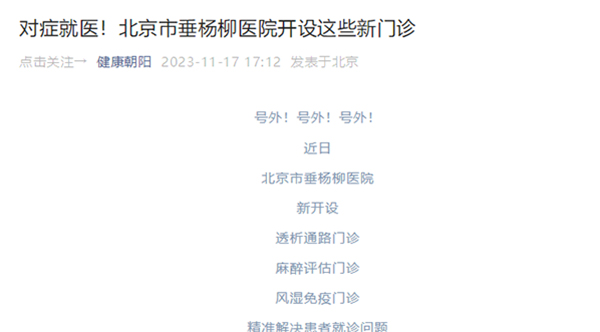 【媒体聚焦】健康朝阳 | 对症就医!北京市垂杨柳医院开设这些新门诊
