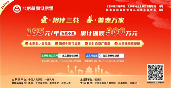 2024年度“北京普惠健康保”保费不变依旧是195元/人/年,累计保额300万元,覆盖医保内自付、医保外住院自费及特定高额药品费用三大保障,医保报完还能报,个人负担更少,真正做到了“以低保费撬动高保障”的惠民初心。