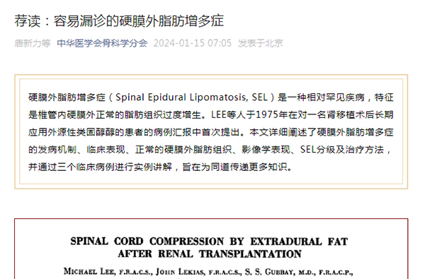 【学术聚焦】中华医学会骨科学分会 | 荐读:容易漏诊的硬膜外脂肪增多症