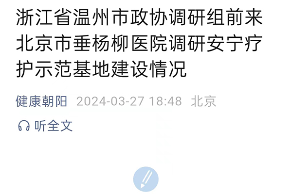【媒体聚焦】健康朝阳 | 浙江省温州市政协调研组前来北京市垂杨柳医院调研安宁疗护示范基地建设情况