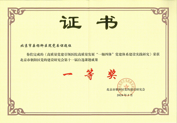 近日,北京市朝阳区党的建设研究会公布了朝阳区第十一届党建研究自选课题评选结果,北京市垂杨柳医院党委报送的《高质量党建引领医院高质量发展——“一轴四体”党建体系建设实践研究》课题荣获“一等奖”。
