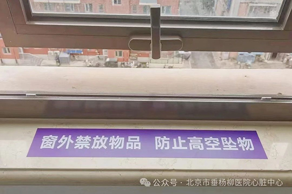 防范高空坠物导致的伤害事件,是每个人共同的职责。患者入院时护士会口头告知患者窗外禁止放置物品,有掉下去伤人的风险。但由于心内科患者常常伴有年龄大,记性差,听力减退的情况加之部分探视家属不知道此要求,时常会看到窗外有物品的情况。为了弥补口头宣教的漏洞,增加文字表示提醒更有助于患者知晓风险,提高依从性。病区在窗台上增设了“窗外禁放物品,防止高空坠物”的提示条。这不仅是一条温馨提示,更是一种责任的传递。医护人员希望用提示条的方式,时刻提醒大家共同遵守规定,营造一个安全的住院环境。