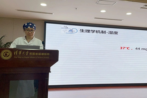最后由呼吸与危重症科主管护师、呼吸专科护士王琦讲授《高流量氧疗的临床应用》,从经鼻高流量湿化氧疗(HFNC)的介绍入手,详细讲解了HFNC在不同临床情境下的应用,以及HFNC的细节管理,包括参数设置、注意事项和感染预防控制。