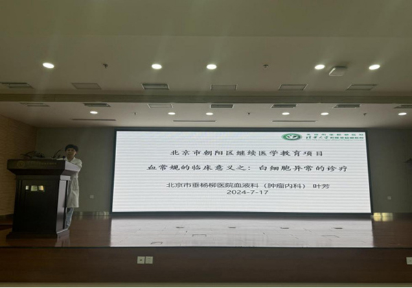 会议由清华大学附属垂杨柳医院血液科(肿瘤内科)主任叶芳主持。首先叶芳介绍了医院和科室基本情况;之后做了《白细胞异常的诊断和鉴别诊断》的讲座;