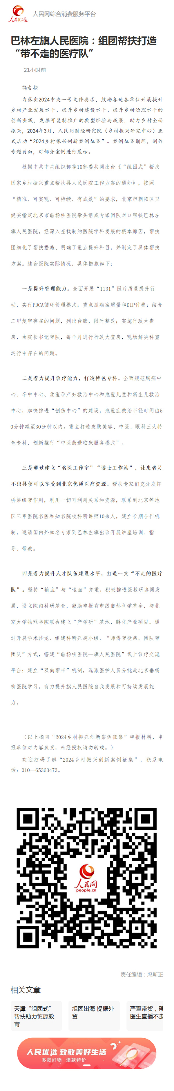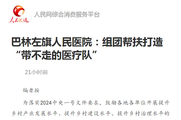 【媒体聚焦】人民网综合消费服务平台 | 巴林左旗人民医院:组团帮扶打造“带不走的医疗队”