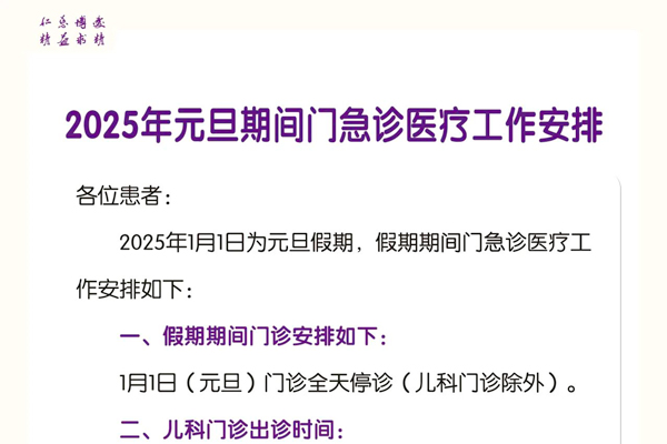 【出诊通知】北京市垂杨柳医院2025年元旦期间门急诊医疗工作安排