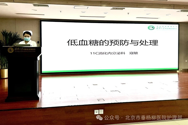 接着,消化内科、内分泌科病区(11C)主管护师高倩讲授了血糖的监测与管理。最后消化内科、内分泌科病区(11C)主管护师寇敏讲授了低血糖的预防与处理方法。