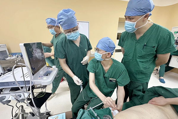 ▲麻醉医生团队为患者行椎旁神经阻滞麻醉
