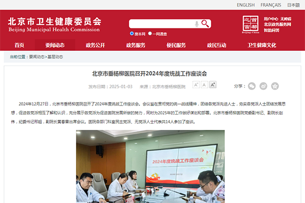 【媒体聚焦】北京市卫生健康委员会 | 北京市垂杨柳医院召开2024年度统战工作座谈会
