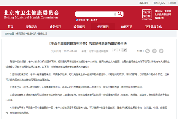 【媒体聚焦】【生命全周期管理系列科普】北京市卫生健康委员会 | 老年脑梗患者的晨间养生法
