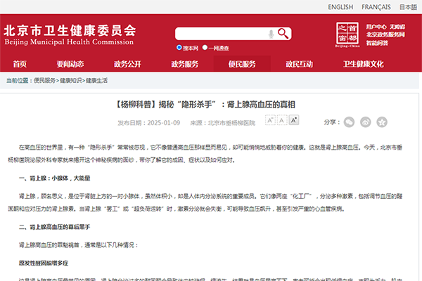 【媒体聚焦】【杨柳科普】北京市卫生健康委员会 | 揭秘“隐形杀手”:肾上腺高血压的真相