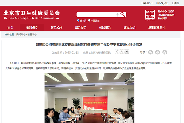 【媒体聚焦】北京市卫生健康委员会 | 朝阳区委组织部到北京市垂杨柳医院调研党建工作及党支部规范化建设情况