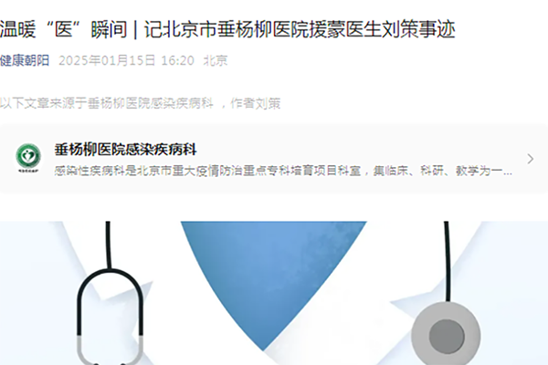 【媒体聚焦】健康朝阳 | 温暖“医”瞬间 _ 记北京市垂杨柳医院援蒙医生刘策事迹