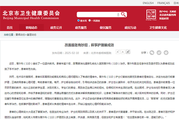 【媒体聚焦】北京市卫生健康委员会 | 改善服务有妙招,叙事护理展成效