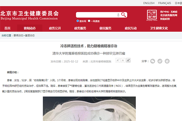 【媒体聚焦】北京市卫生健康委员会 | 冷冻肺活检技术,助力疑难病精准诊治