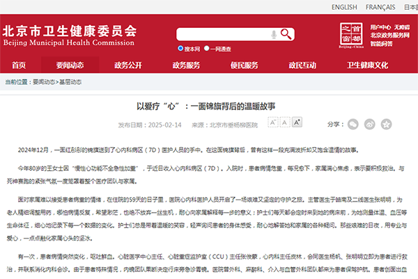 【媒体聚焦】北京市卫生健康委员会 | 以爱疗“心”:一面锦旗背后的温暖故事