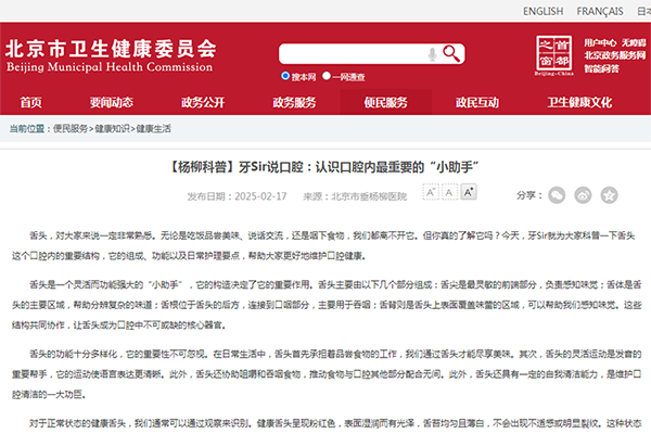【媒体聚焦】【杨柳科普】北京市卫生健康委员会 | 牙Sir说口腔:认识口腔内最重要的“小助手