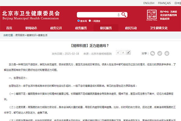 【媒体聚焦】【杨柳科普】北京市卫生健康委员会 | 乏力是病吗?