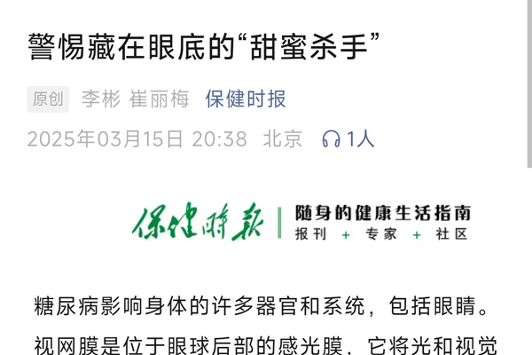 【媒体聚焦】保健时报 | 警惕藏在眼底的“甜蜜杀手”