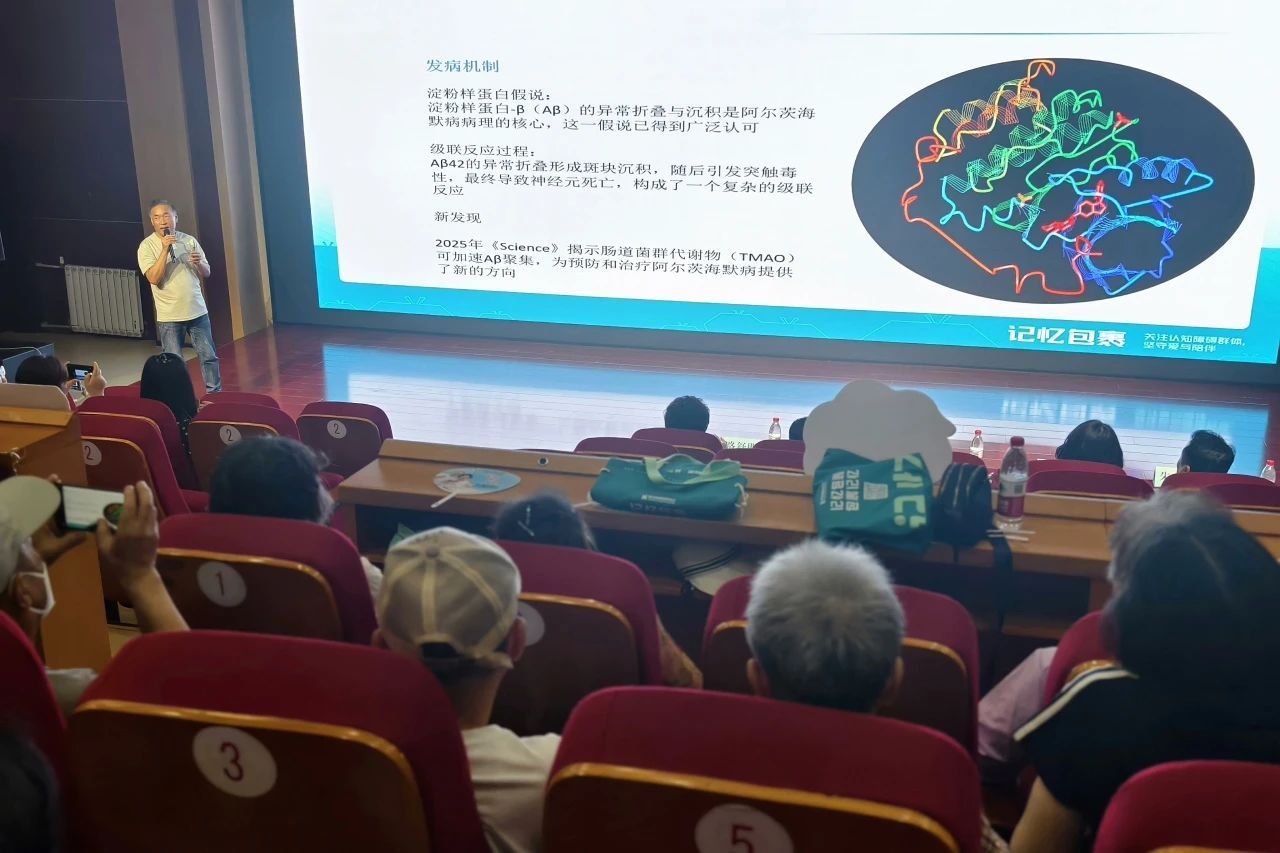 6月20日,清华大学附属垂杨柳医院老年科主任彭夫松、副主任梁鹏携手临床营养科、临床药学和北京潘家园中西医结合医院以及韩红基金会于潘家园街道开展宣教和义诊活动。彭夫松向居民进行了《带您认识阿尔兹海默症》的主题分享,以深入浅出、通俗易懂的方式,科普了阿尔茨海默症的发病机制、临床表现、分期、诊断、治疗和照护要点,为现场居民上了一堂生动的脑健康科普课。